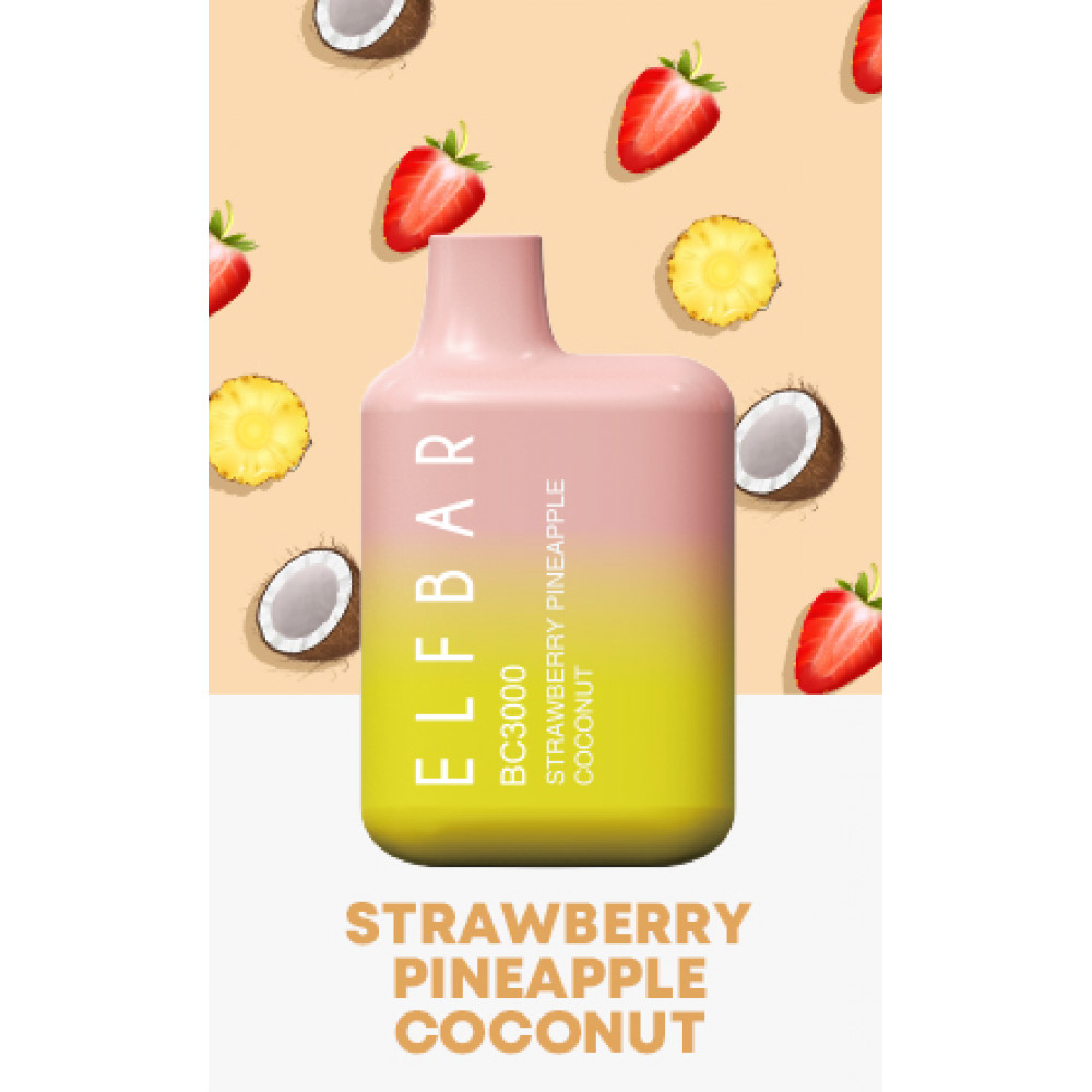 • Электронная сигарета Эльф Бар 3000 затяжек Клубника Ананас Кокос (Elf Bar BC 3000 Strawberry Pineapple Coconut)
