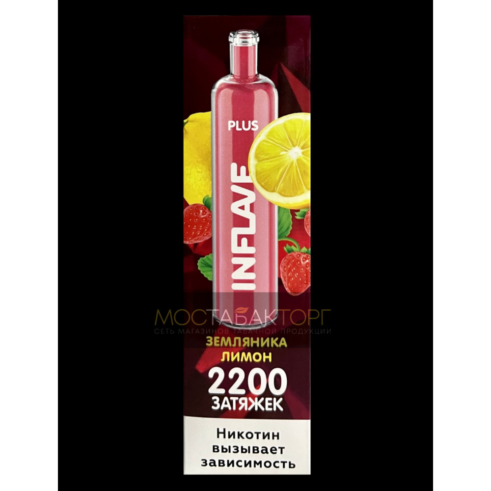 • Электронная сигарета Inflave Plus 2200 затяжек Земляника Лимон